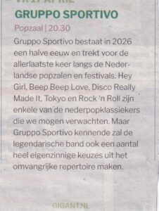 Zowel in de Volkskrant van 8 jan 2026 als op Facebook staat een uitgebreid artikel over het landelijk bekende/populaire Apeldoornse Poppodium GIGANT